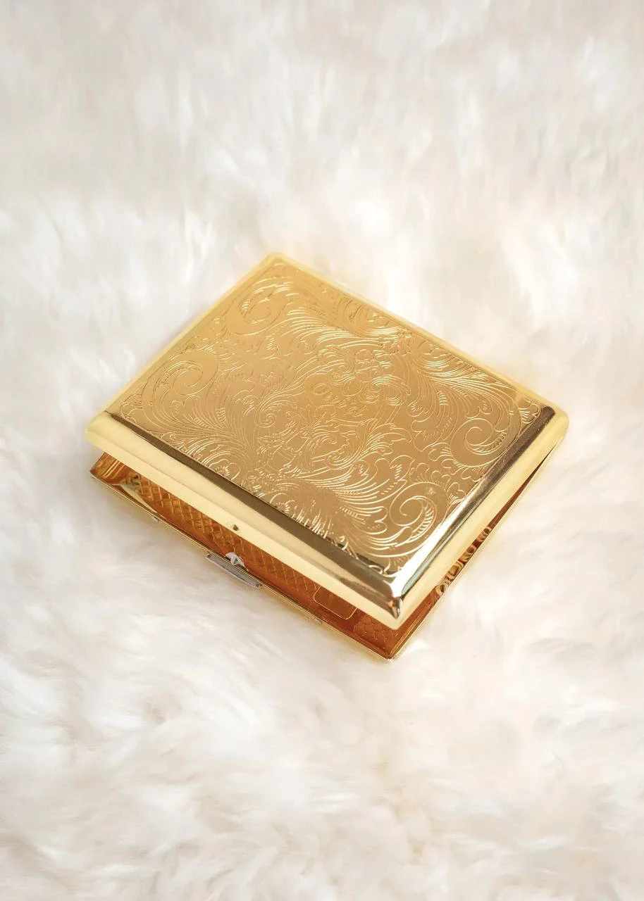 This elegant gold joint case is embossed with stunning Fleur De Lis pattern and engraved with Oui'd (a nod to our favorite plant) in the center