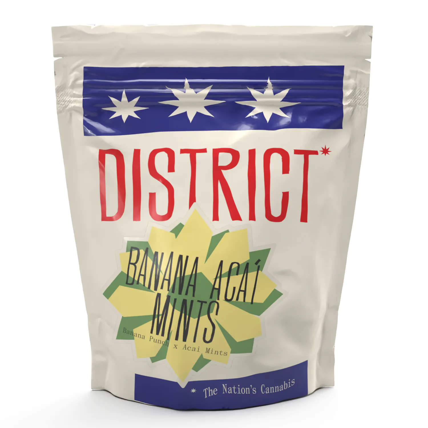 Cross of Banana Punch x Acai Mints, bred by Tiki Madman. Palate of citrus, berries, gas, and wildflowers. Utilized for pain relief, relaxation, and stress reduction.