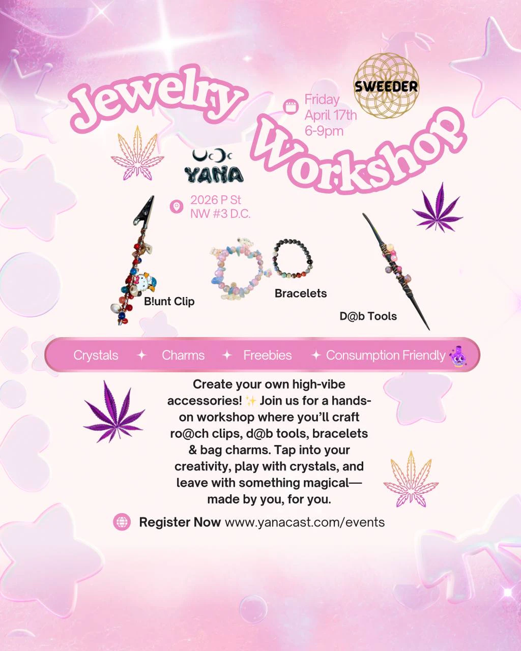 @MarissaGone will be hosting a Gemstone Jewelry Making Lesson where you will be able to pick your own gemstones to create a roach clip, bracelet or another accessory. Make your own custom friendship bracelets or gemstone roach clips! All crystal beads, gemstones, wire, takeaway satin bags, & crystal reading materials are provided.